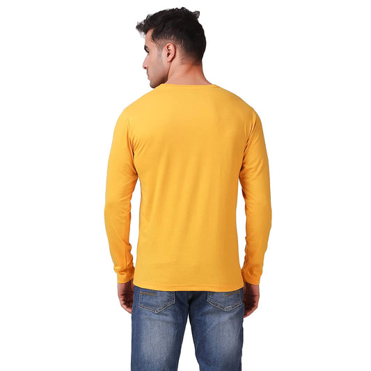 Mustard Henley Full Sleeves T-Shirt For Men